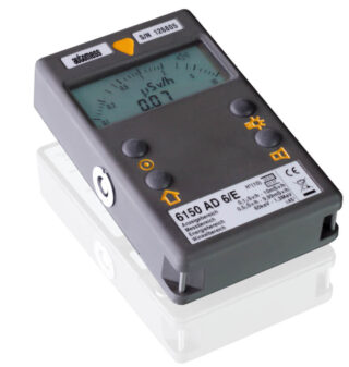 6150AD er et kalibrerbart dosehastighetsmåleinstrument i et robust, vanntett hus av trykkstøpt aluminium. Den innebygde telleren brukes til å måle fotonstråling (røntgen- og gammastråling). Som bokstavene “AD” i betegnelsen indikerer, har apparatet både et analogt og et digitalt display med automatisk områdeveksling. Varsellyder og akustisk enkelpulsdeteksjon genereres via en piezohøyttaler som er integrert i huset. En kontaktpinne i probesokkelen fungerer som seriell grensesnitt og kan brukes til å overføre og evaluere apparatets visning (dosehastighet) til en PC. Det medfølgende 9-voltsbatteriet (IEC 6LR61) har en levetid på ca. 3000 driftstimer.